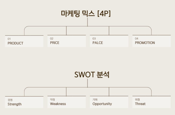 위에 5가지 항목에 대한 질문에 대답을 하고 나면, 4P Mix 관리[제품(product), 가격(price), 판촉(promotion), 유통(place)] 와 SWOT 분석[강점(strength)과 약점(weakness), 기회(opportunity)와 위협(threat)] 진행하면서 비즈니스의 뼈대를 갖춰 나가게 된다.